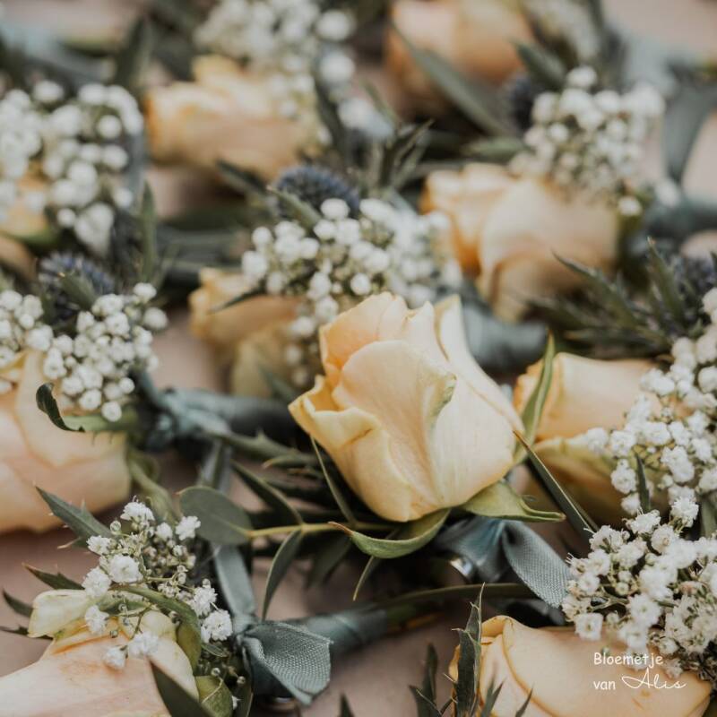 Bruidegoms corsage met speldje 7.50 met magneetje : 8.50